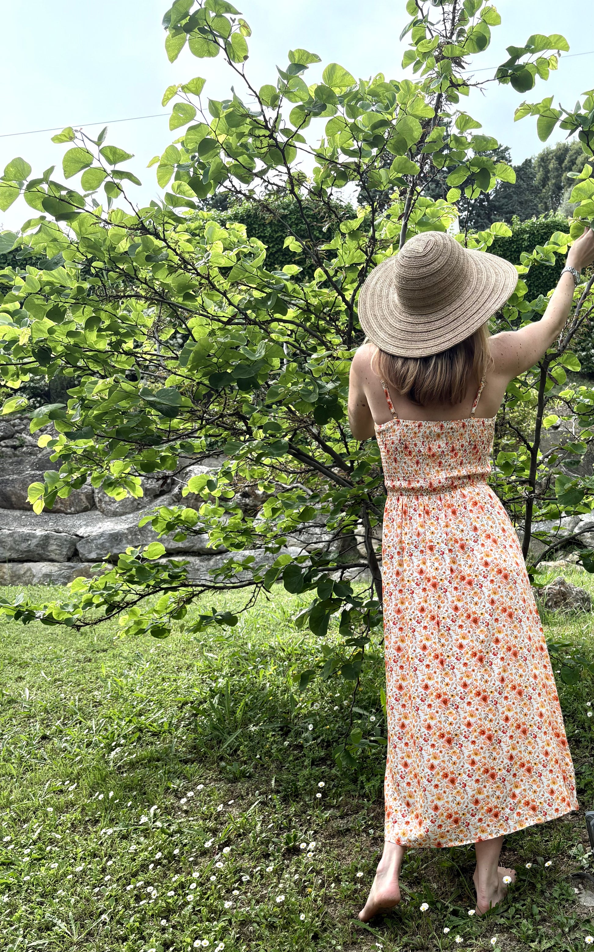 Robe longue fendue, fluide à fines bretelles ajustables avec taille élastique.